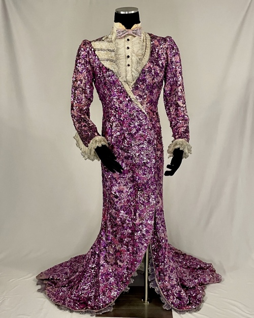 "Theoni V. Aldredge also designed and won a Tony Award for the costumes for La Cage aux Folles, which opened in 1983. It's significant in theatre history as the first Broadway musical that centered on a gay relationship and publicly acknowledged the AIDS crisis. But the clothes were also unbelievable because Theoni was given license to really go crazy. The costumes were so wild and beautifully designed—there had been nothing like it since the Ziegfeld Follies. It felt that grand and big and created for audiences to go, 'Wow!' The Collection received the donated costumes decades after the show closed on Broadway, right before the pandemic. They were used on countless tours so they're not in great condition, but they are historically important. This is one of George Hearn's costumes for when his character Albin was in Marlene Dietrich-style drag as Zaza, the star of the title nightclub. It's legendary."