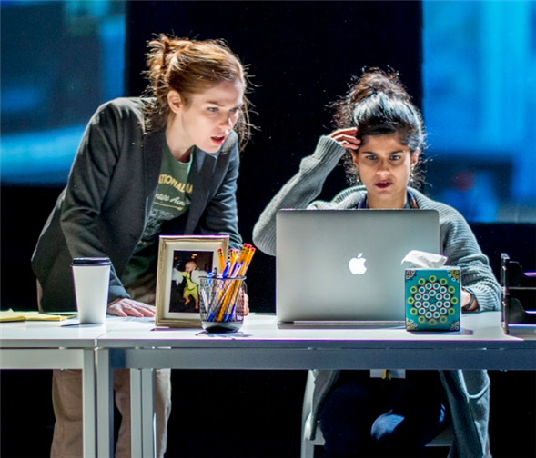 Currently, APAC is inaugurating its new home with the New York premiere of Madhuri Shekar's drama Queen about two women scientists, Sanam (Mahima Saigal) and Ariel (Rachel Rhodes-Devey), trying to help save the dwindling bee population until they run into a potentially career-ending snag. Shekar began writing the play at a time when "the most important thing in my life was my work and my female friendships," she says. "I never saw that reflected anywhere; I never saw stories about the meaning of work and work friendships," so she set out to fill that void.