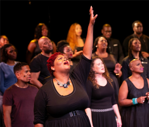 Top image: De-Rance Blaylock and choir members in Antigone in Ferguson. Photos by Gregg Richards.