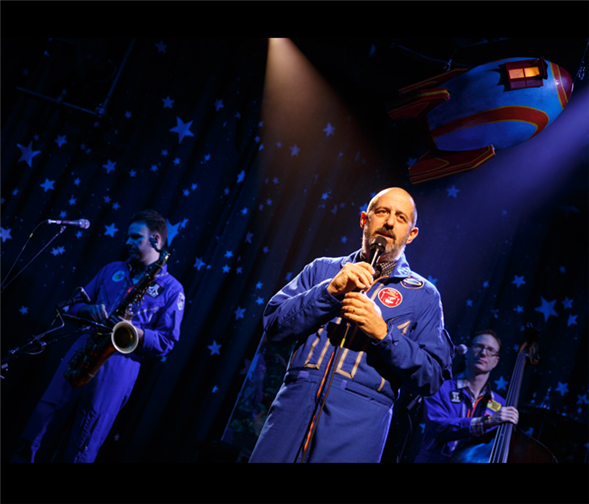The show's songs stoke our imaginations, too. Take the question of pets: At one point the narrator says, "Here’s how the two dogs feel about trading in life on a fourth-floor walkup for a great big spaceship with plenty of room to roam." And just when you think he's going to bark, the band plays a jaunty, wordless tune that lets us picture two golden retrievers running wild.