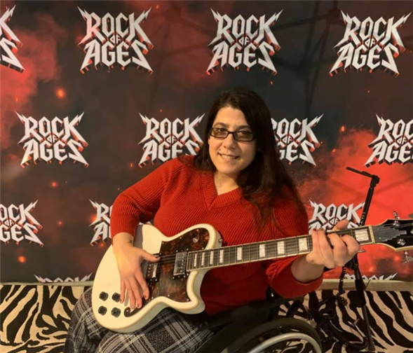 Top image: The author at Rock of Ages when the show was at New World Stages. Photo courtesy of Christina Trivigno.