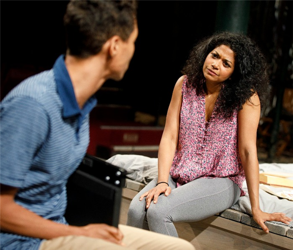 Top image: Kyle Beltran and Rebecca Naomi Jones in Fire in Dreamland. Photos by Joan Marcus.