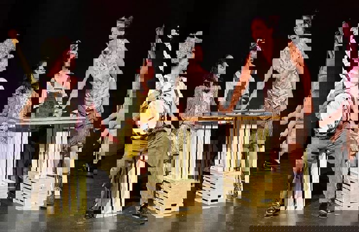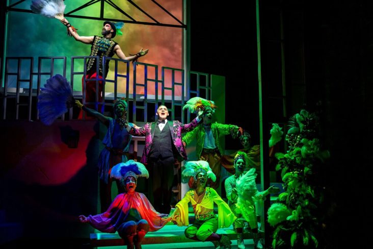 Parrots at the Pagoda at Pregones/Puerto Rican Traveling Theater, one of many fabulous shows running Off-Off Broadway this month. Photo by Krystal Pagán.