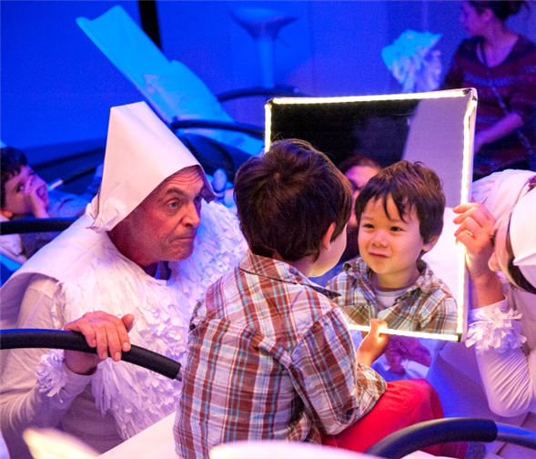 That compassionate atmosphere continues throughout the show. "Everyone sits together, the artists intermingling with the audience. It's never us and them," says Webb. "We respond as best we can to any interventions from the young people themselves. If they want to ask questions or make suggestions -- and we really hope they will -- we want them to feel that it's their world and we're welcoming them into it."