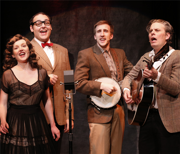 On a set that recalls brick-wall clubs like The Bitter End, the actors sometimes play iconic figures like Pete Seeger, Judy Collins, and Leadbelly, and sometimes they essentially play themselves, talking to us directly about how folk music became one of the most enduring American art forms.