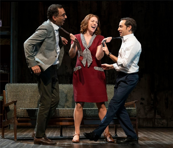 Top image: Manu Narayan, Jessie Austrian and Ben Steinfeld in Merrily We Roll Along. Photo by Joan Marcus.