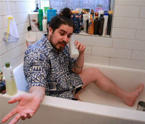 When Schaffer began writing the play about three years ago, "all I knew was that I was excited about the idea of performing in a bathtub." He worked out the specific contours with director Audrey Frischman and dramaturg Anna Woodruff. Together they decided it would be so interactive that the audience would help guide what happens.