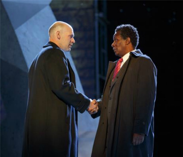 Top image: Corey Stoll and John Douglas Thompson in Julius Caesar. Photos by Joan Marcus.
