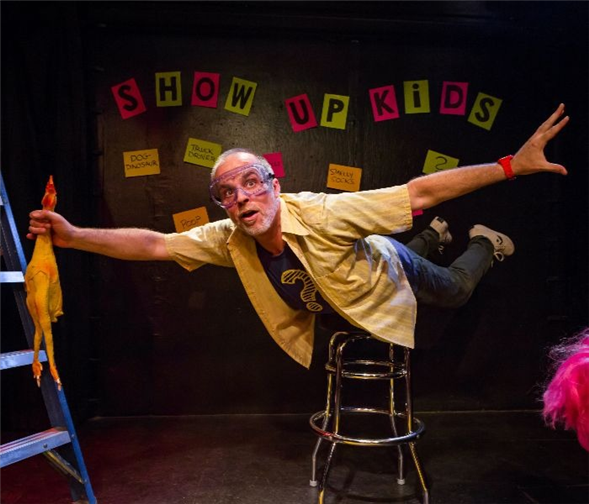 We kept the idea of improvising a show but changed the setup: At Show Up, Kids!, the fictional star Sally the Silly Song Singer would not show up. So, there I'd be, just a friend who'd agreed to help with props and costumes who was suddenly tasked with putting on an entertaining show. Like the grown-up version, I'd get suggestions from the kids, but in this junior edition, I'd be subtly teaching them how theatre is made, how stories work, and that doing something is more rewarding than just thinking about it.