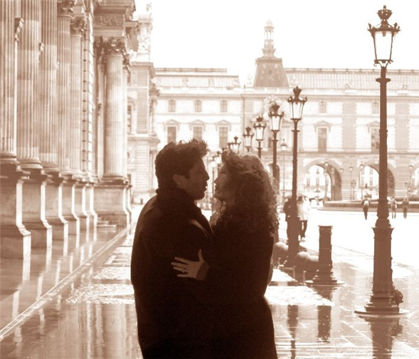 Top image: the author and her husband on vacation in Paris, the city where Les Misérables takes place.