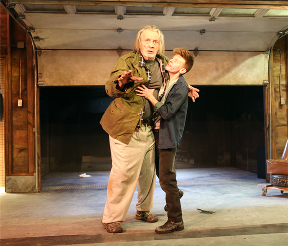 Eventually, Wills and set designer Kate Noll decided to place everything in a garage, which for many men is a macho shrine. "A garage is this private space where we think fathers are, working on cars and model airplanes, a space that's neither inside nor outside," Wills says. "A garage is also this place where you store old memories and other things that you put away and have forgotten until you unearth them later on. [So on this set], we're always aware of where they are as each memory stacks on top of the other. By the end of the play you really experience the complete canvas of this person's life."
