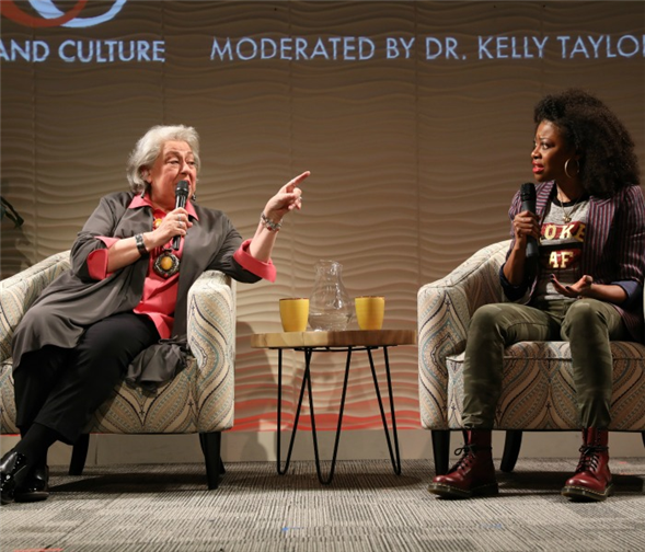 Since Relevance charges boldly into issues of intersectionality between first-wave white feminism and African-American identity politics, it's no surprise that the multicultural cast and creative team engaged in intense discussions during the rehearsal process. "We did talk a lot about the blindness of white privilege," Houdyshell says. "How impossible it is to see that in oneself, and how that impacts people who are regarded as 'other.' So much of Relevance is about blind spots and how hard they are to identify."