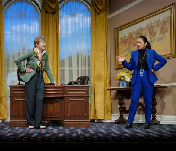 Top image: Julie White and Suzy Nakamura in POTUS. Photo by Paul Kolnik.
