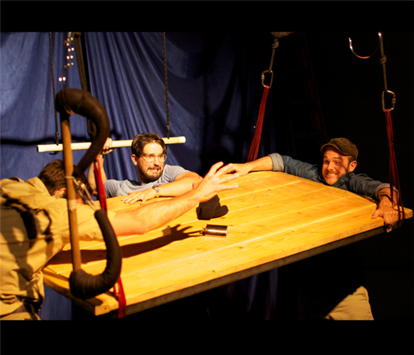 In This Is Not J.A.W.S., playing Monday nights in August at Dixon Place, the boat in question is smaller than ever – just a platform about the size of a dining room table – and it swings from cables attached to the theatre's ceiling.