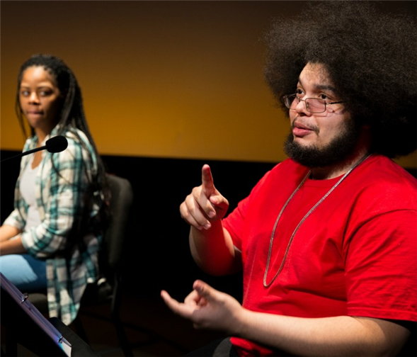 The New Victory Theater, which specializes in theatre for family audiences, actually commissioned this edition of Undesirable Elements. "They wanted to do a show that featured voices of young New Yorkers from diverse backgrounds," explains Ping Chong associate director Sara Zatz. While that's an incredibly broad theme, after months of outreach and interviews, they settled on seven city youths ages 18 to 22 whose stories touch on a dizzying array of issues, including foster care, child abuse, homelessness, racism, violence, depression, DACA, gender identity, and sexual orientation.