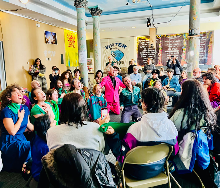With their new performance space, dubbed the Earthchxrch, the Choir has a place to gather every Sunday as well as a home base where they can evolve new works and plan their activities, such as providing aid to migrants outside of overpacked shelters or marching for a ceasefire in Gaza.