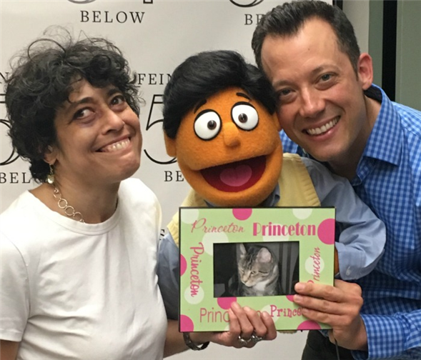 Top image: Krasnow with original Avenue Q cast member John Tartaglia, his Princeton puppet and a picture of her late cat. Photo courtesy of the author..