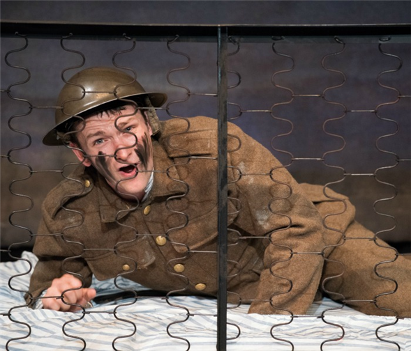 This production of Private Peaceful, which will tour to other U.S. cities after its New York City engagement ends, originated in Dublin with O'Regan, who was nominated for an Irish Theatre Award for his work. It's easy to see why: He's constantly in motion for the play's whirlwind 80 minutes, switching voices and accents and cavorting around the stage as Tommo evolves from rural British schoolboy to disillusioned soldier.