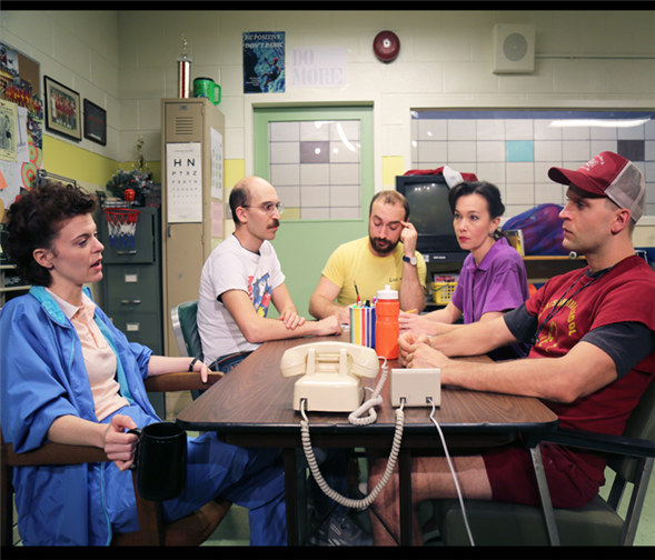 Indeed, the language in Miles for Mary often draws on the platitudes of uplifting educational posters. Neugebauer calls the aesthetic "sad / bad"—like a blend of The Office and Christopher Guest's ensemble-driven films. "We make small worlds where people take their jobs very seriously," says Neugebauer, who points out there can be a danger in aiming for the low hanging fruits of easy humor. "The stuff that's funny in this play emerges not from situational comedy but from a heartbreaking truth about the hopes and dreams of people living in the middle of the country in 1988."