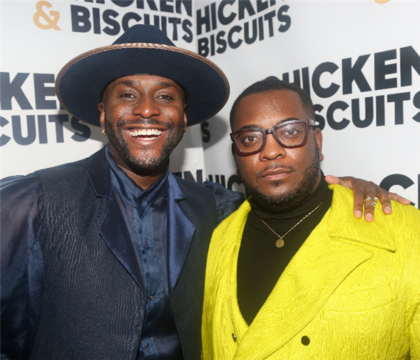 Top image: Douglas Lyons and Zhailon Levingston on the opening night of Chicken & Biscuits on Broadway. Photo by Bruce Glikas.