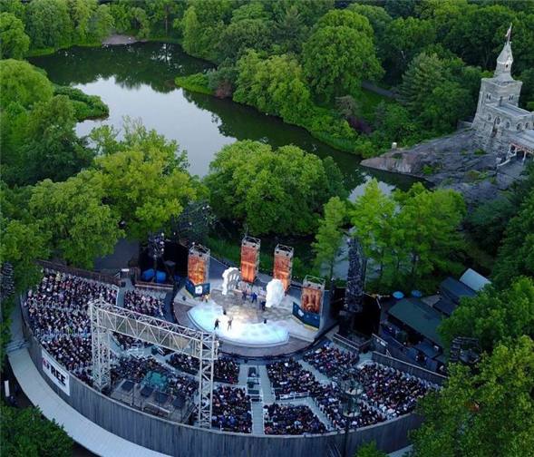 Top image: Aerial view of the Delacorte Theater in Central Park, home of The Public Theater's Shakespeare in the Park.