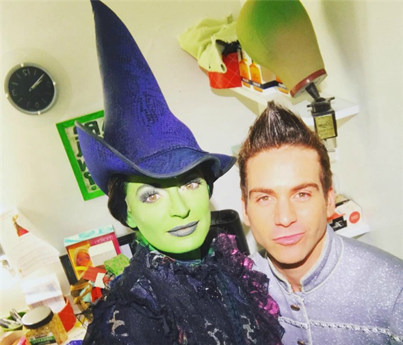 Top image: Jackie Burns and Jye Frasca backstage at Wicked.