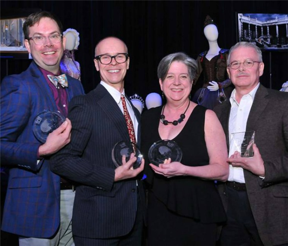 Top image: Travis Halsey, Fritz Masten, Holly Hynes and Zach Brown at the TDF Irene Sharaff Awards. Photo by Anita & Steve Shevett.