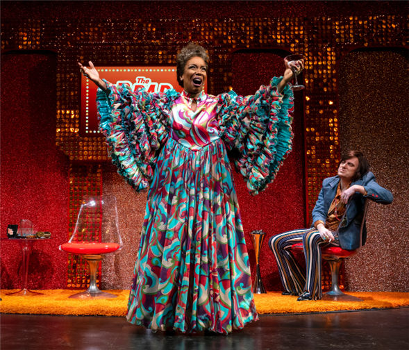 That's certainly apparent in Meet Vera Stark, in which many actors are double cast. Ayite's costumes not only differentiate the characters, they give insight into them, too. For example, as a Golden Age of Hollywood studio executive, actor David Turner dons a navy blue suit that could double as an undertaker's uniform, and though he supposedly wields all the power in the room, he is a touch too small for the clothing he wears. Then there's Gloria (Jenni Barber), the '30s movie star who employs Vera as a maid. At a boozy dinner party, Gloria's red velvet, feathered gown reflects the garish vulture beneath her "America's little sweetie-pie" persona. And of course, the transformation of Vera (Jessica Frances Dukes) from real-life servant to movie slave to psychedelic '70s diva is immeasurably aided by Ayite's work, which divulges telling details about her journey.