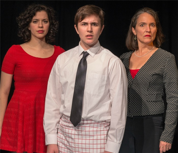 Top image: Amy Berryman, Milo Kotis, and Ayun Halliday in Greg Kotis's Lunchtime. Photo by Gyda Arber