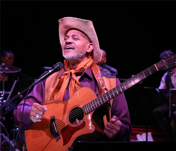 Ultimately, Harris left the farm to pursue a career as a jazz singer, guitarist, and songwriter. He's recorded numerous albums and played at storied music venues around the world, but Cross That River is his first foray into theatre. It began as a concept album over a decade ago, and Harris admits some of his colleagues didn't understand his change in direction. "I'm known as a romantic balladeer, and I've actually had people in my genre, close friends, who have looked at me and said, 'Are you foolish, to be doing this?'" he recalls. But -- like Kirsten Childs and her recent musical Bella: An American Tall Tale -- Harris wanted to shine a light on the diversity of the Old West. He bemoans the fact that for many people, including African Americans, the words "black cowboy" primarily evoke memories of "Blazing Goddamn Saddles" or Jamie Foxx as the gunslinging Django. "I was surprised that my peers, and people that I grew up with, had no idea of this."
