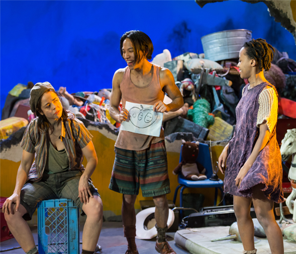 In Phillip Howze's hilarious, heart-wrenching, and sometimes scabrous Frontiéres Sans Frontières, playing through Mar 25 at the Bushwick Starr, three stateless kids take center stage. They speak a creatively styled English that tickles the listener's ear and could only be uttered by those for whom English is a second language. The plucky trio live, dance, and make mischief in a garbage heap, where they encounter a number of well-intentioned adult buffoons who try to "improve the lot" of the youngsters.