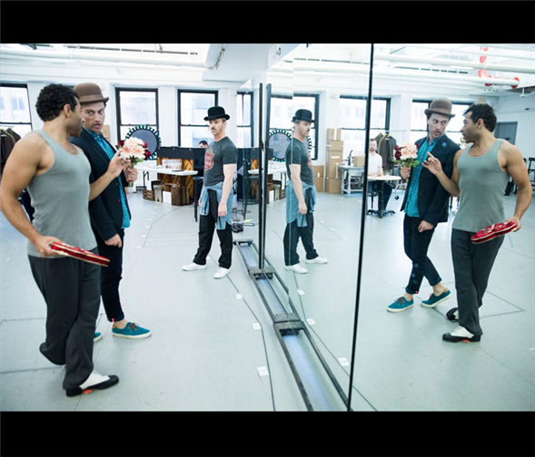 Photos by Jenny Anderson. Top photo (L to R): Corbin Bleu, Bryce Pinkham and Denis Jones in rehearsal for Holiday Inn.