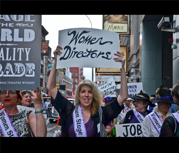 If you're planning to be in the Theatre District next Tuesday evening, June 9, don't be surprised if you see Katharine Cornell, Mary Pickford, or Dorothy Parker sashay by. Those creative heroines and many more historic ladies will be portrayed by current artists and members of the League of Professional Theatre Women (LPTW) in the org's third annual Women Stage the World – Gender Equality Parade. Equal parts street performance and political action, this engaging, suffragist-inspired march is meant to educate the public about the gender disparity in the theatre industry, as men continue to significantly outnumber women as playwrights and directors. To find out more about this unique, once-a-year happening, we asked theatre director and interactive artist Mahayana Landowne, the Chairman of the Advocacy Committee of the LPTW, to share her remembrances from past parades and explain what she hopes bystanders (especially those buying theatre tickets) get out of this year's edition.