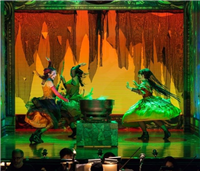 Over the years, the role of the Sorceress, which was traditionally played by a man, became a dream role for some of the greatest leading men of their time. The tradition continues in this production, as Mikhl Yashinsky, from the Folksbiene’s smash-hit Fiddler on the Roof in Yiddish, assumes the title role.