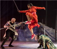 Fast-paced martial arts combat and balletic dance sequences unfold in front of, around, and above the audience in this original production