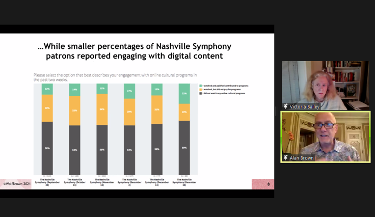 The event also featured Alan Brown, principal of WolfBrown and a leading researcher and management consultant in the arts sector. Over the past eight months, TDF has been working with Brown and his team to gauge audience interest in digital content as well as returning to in-person performances when theatres reopen. Individuals surveyed include TDF members along with patrons from 22 different international and US organizations.